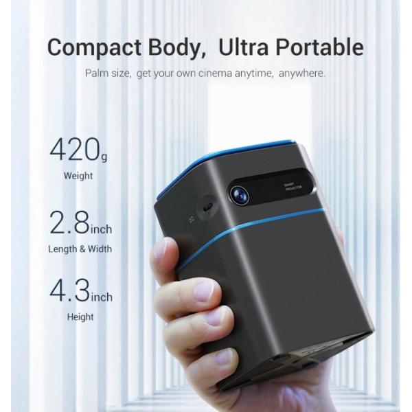 Mini size and light weight, Wireless Mobile Smart USB Video Dual Wifi Full HD Support 4K LED Android 9 Home Theater HIFI Speaker Mini Pocket Portable DLP Family Entertainment for Smartphone Tablet Mobile Phone PC Projector